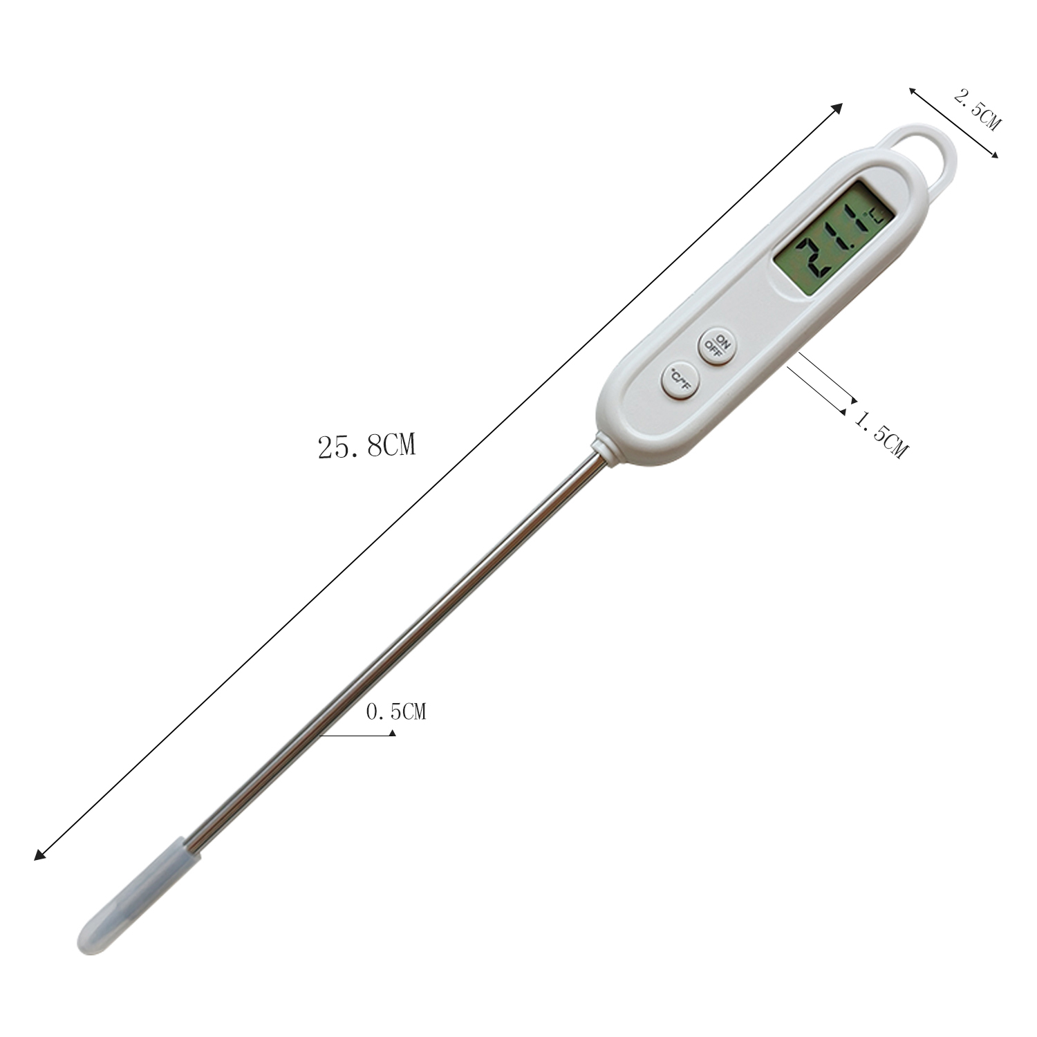 लंबी जांच डिजाइन: थर्मामीटर लंबी जांच से सुसज्जित है जो भोजन के अंदर गहराई से घुस सकती है ताकि यह सुनिश्चित किया जा सके कि वास्तवि यह खाद्य पदार्थों के लिए विशेष रूप से महत्वपूर्ण है जिन्हें समान रूप से गर्म करने की आवश्यकता होती है।