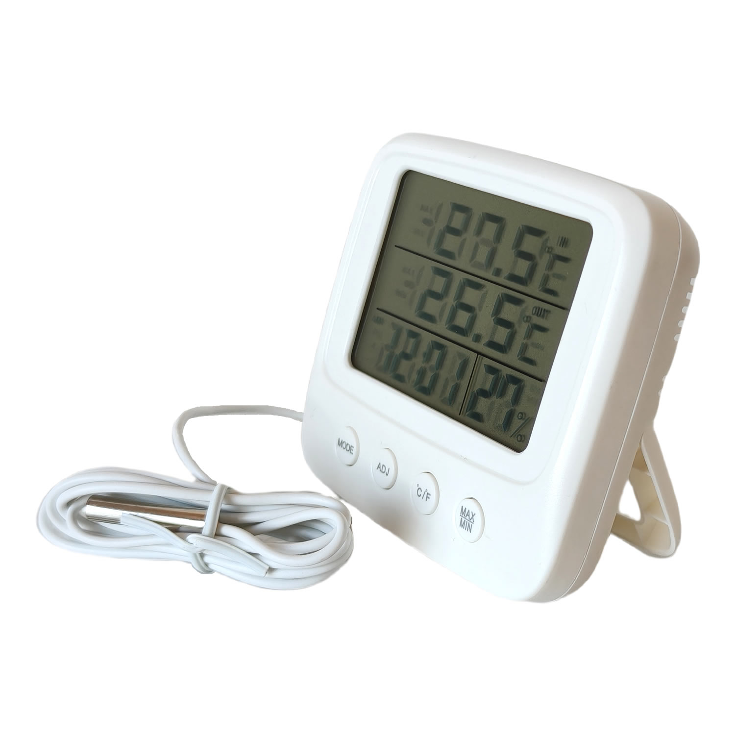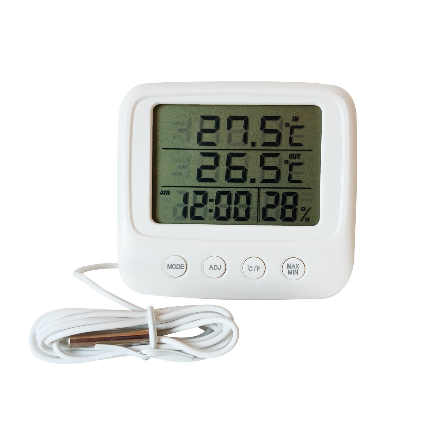 24 घंटे का समय प्रदर्शन: तापमान और आर्द्रता के अलावा, यह आपके दैनिक जीवन को सुविधाजनक बनाने के लिए वर्तमान समय प्रदर्शित कर सकता है।