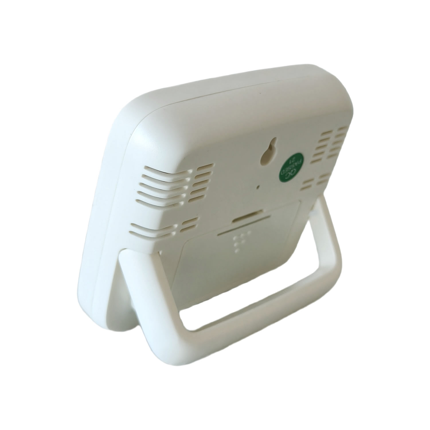 आर्द्रता प्रदर्शन: तापमान के अलावा, यह आर्द्रता का प्रतिशत भी प्रदर्शित करता है, जो आपके निवास के वातावरण को बेहतर ढंग से विनियमित करने में मदद करता है।